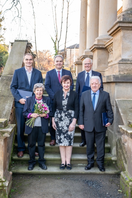 Společná fotografie laureátů s předsedou AV ČR Radomírem Pánkem a místopředsedkyní Ilonou Müllerovou