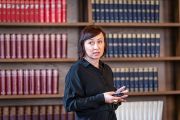 Knihovna Akademie věd ČR nabízí důstojné a klidné zázemí každému, kdo si potřebuje napsat diplomovou práci nebo se připravit na zkoušku. Čtenáři, kteří vyžadují ke své práci klid a soukromí, si mohou pronajmout malou uzavíratelnou studovnu (předsedkyni AV ČR Evě Zažímalové ji ukazuje ředitelka knihovny Magdaléna Vecková).