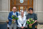 Zleva: Na snímku místopředseda AV ČR Pavel Baran, ředitelka Knihovny AV ČR Magdaléna Vecková a předsedkyně AV ČR Eva Zažímalová