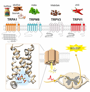 „Zmapovali jsme konkrétní místo na molekule jednoho z takových iontových kanálů, TRPA1. Je to velmi důležitá oblast, kde se soustřeďují signály vyvolané řadou různých bolestivých podnětů, např. snížením okolní teploty nebo pálivými látkami z rostlin. Významné jsou i ionty vápníků, které tímto kanálem mohou vnikat do buňky a regulovat jeho činnost,“ vysvětluje Viktorie Vlachová.
