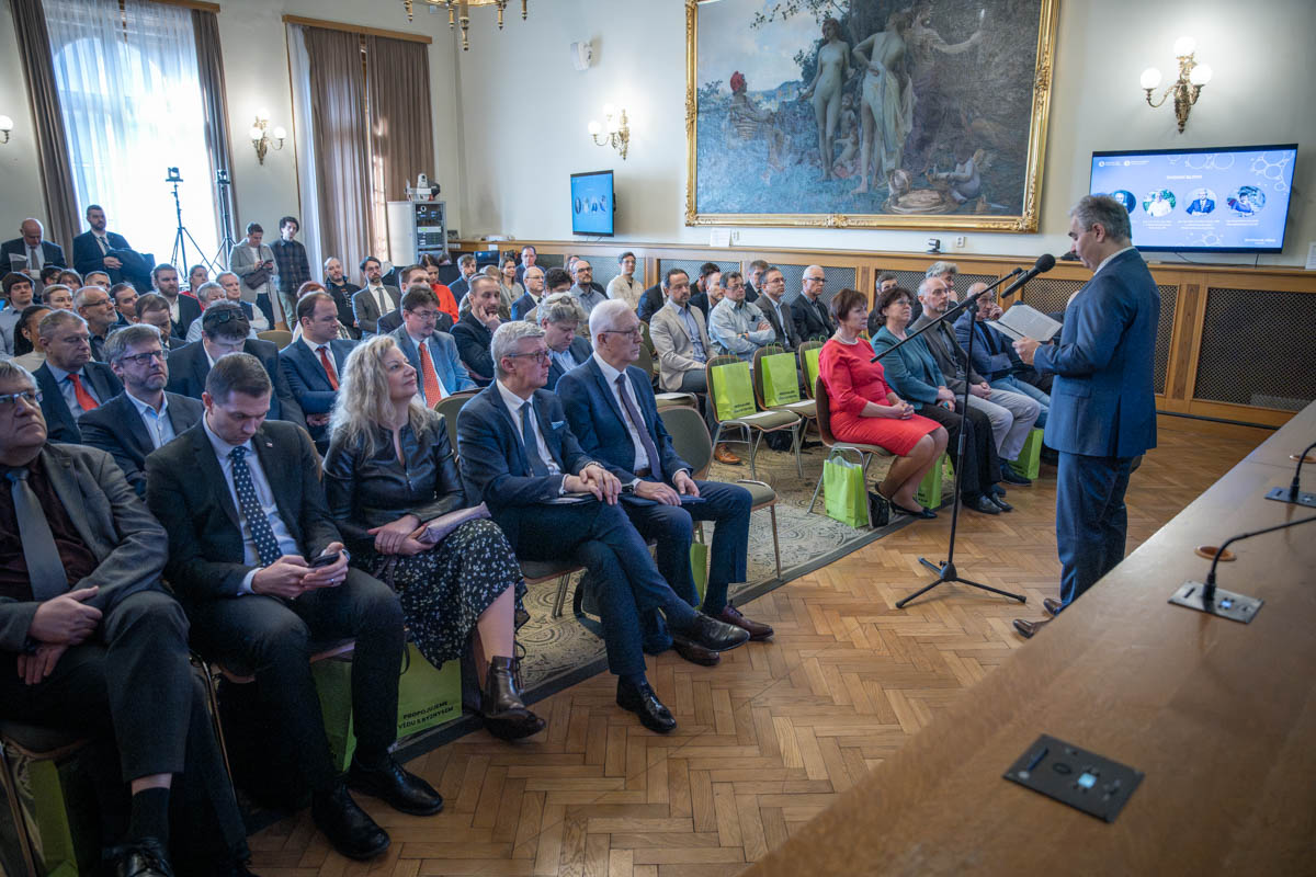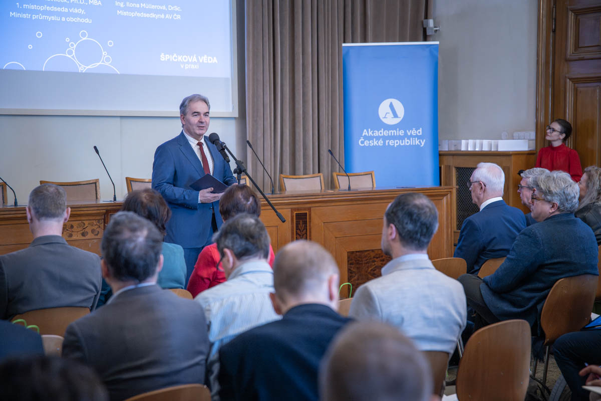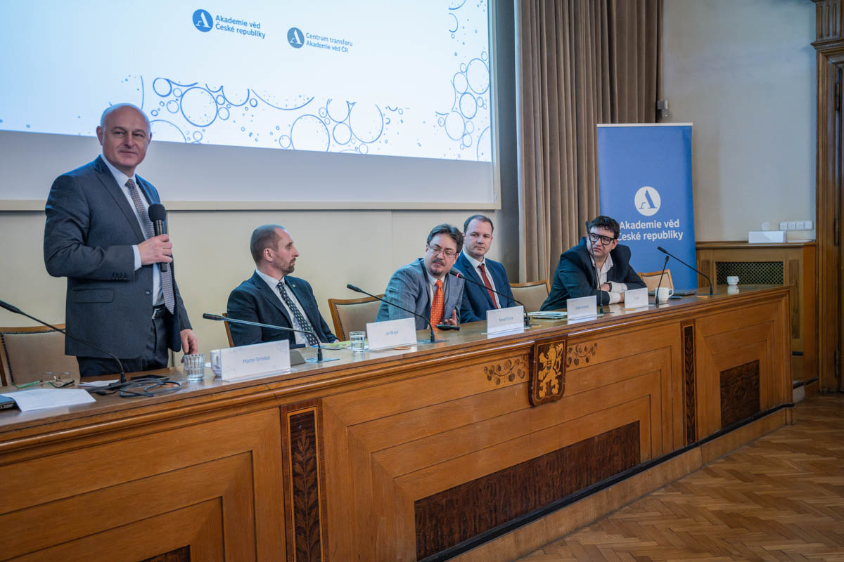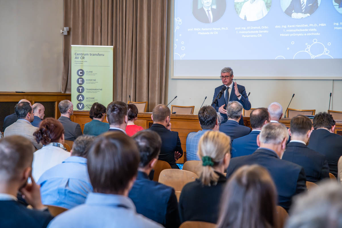 Předseda Akademie věd ČR Radomír Pánek v úvodu konference představil nově zakládanou akciovou společnost.