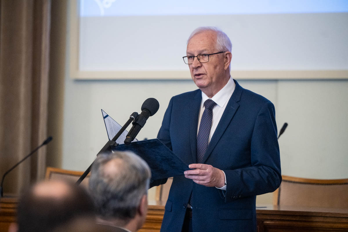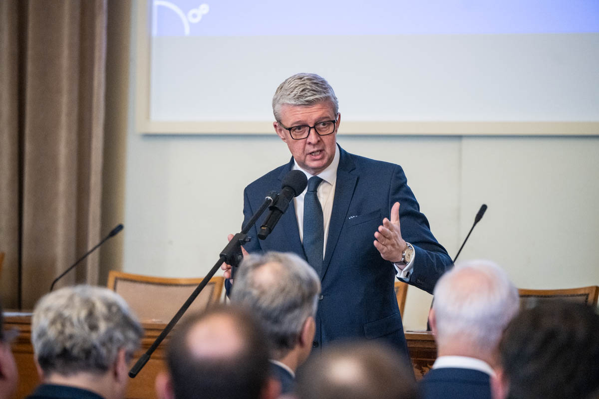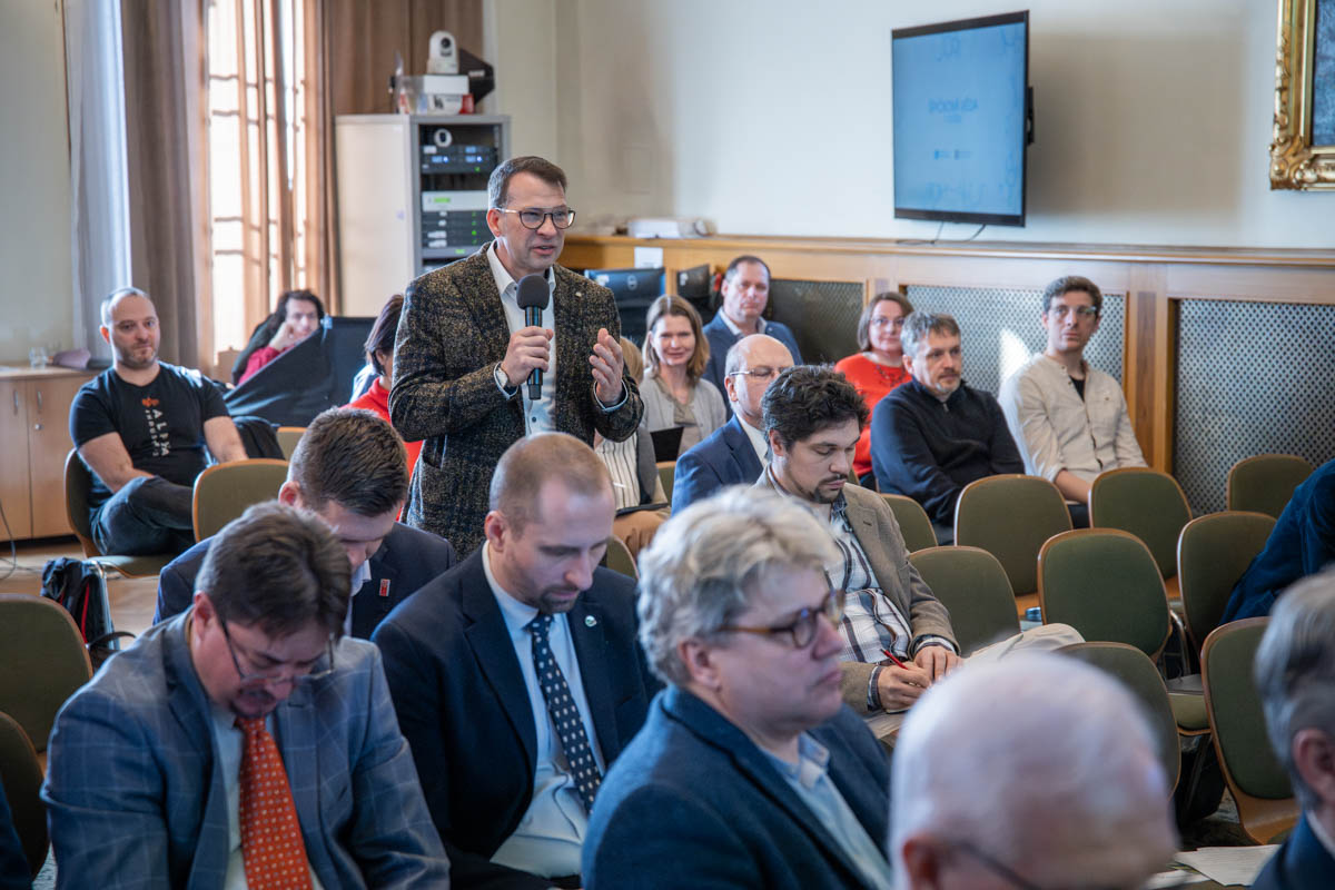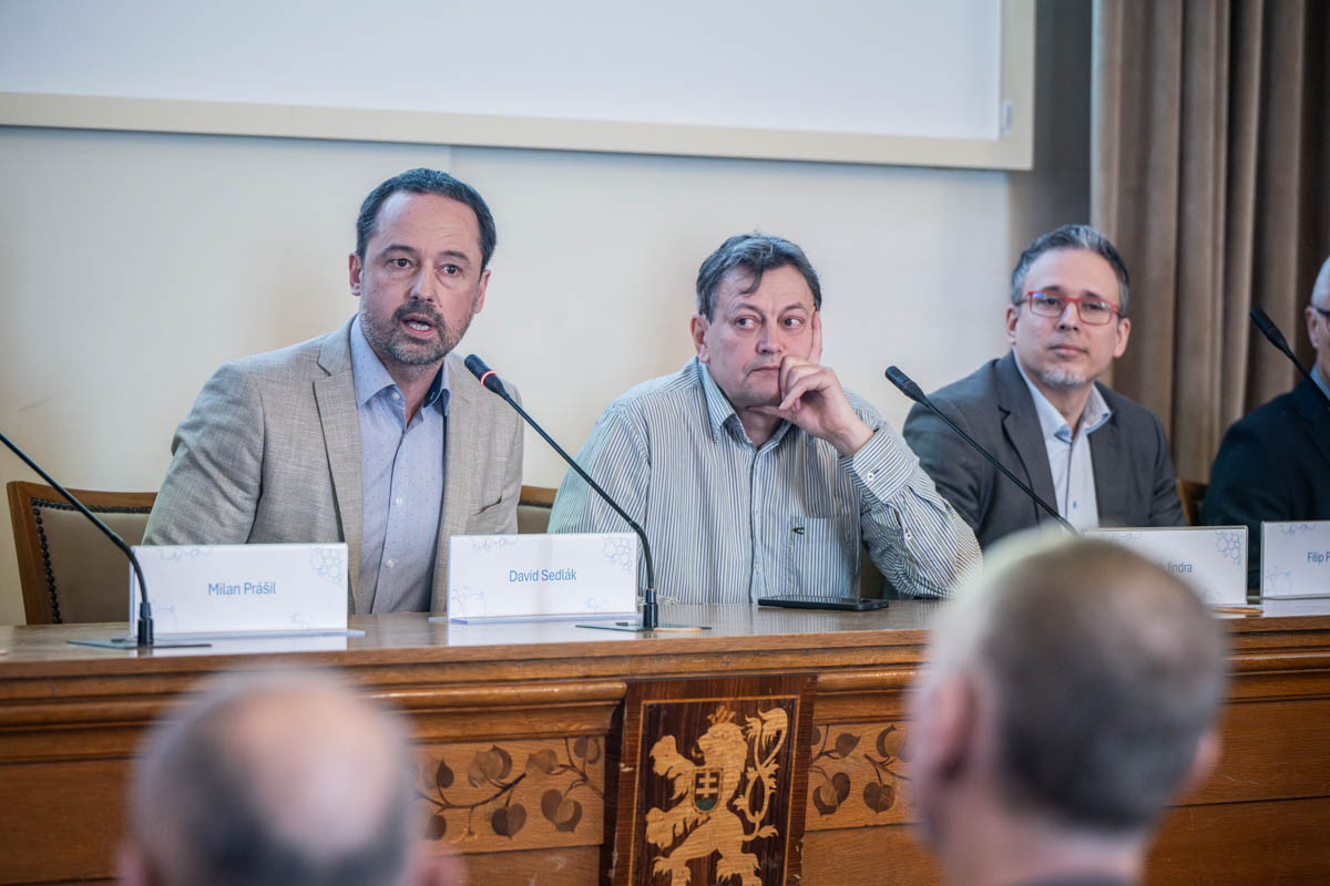 Předseda Akademie věd ČR Radomír Pánek v úvodu konference představil nově zakládanou akciovou společnost.