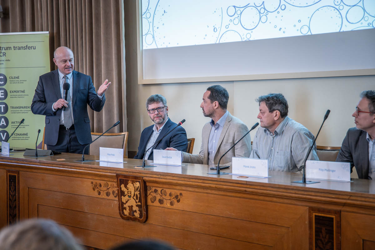 Na jeho slova navázal místopředseda Senátu Parlamentu ČR Jiří Drahoš, který v roli předsedy Akademie věd ČR v letech 2009 až 2017 stál u zrodu některých aplikačních iniciativ. Významným krokem byla např. implementace Strategie AV21 v roce 2015 a následné zřízení Centra transferu AV ČR (CETAV).