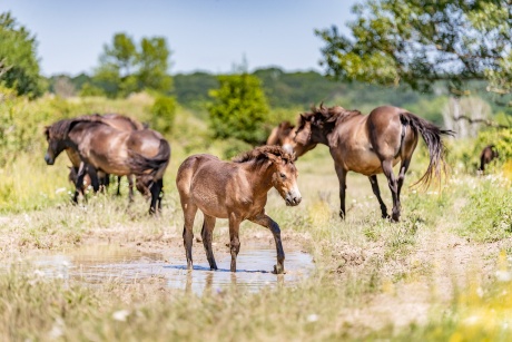 Minivýstava Návrat velkých kopytníků. Snímek pochází z rezervace v Milovicích, kde se pasou všechny tři klíčové druhy velkých kopytníků Evropy – divocí koně, zubři a pratuři.